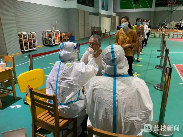 7月30日上午,陶行知中学采样点,南京河西美容医院志愿者刘稳由建邺区卫生监督所党支部组织赶赴支援,她全神贯注地采集。