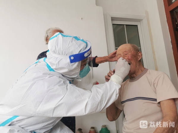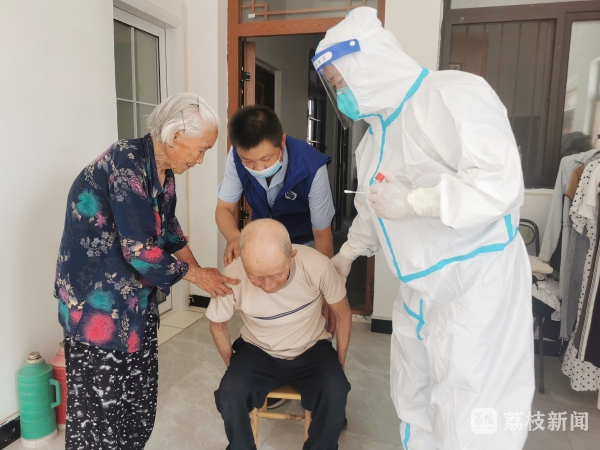 天气炎热,村上90岁老人杨长福行动不便,在得知这个消息后,王为兵主动要求上门,与医护人员一道,为老人进行核酸采样,为特殊群体提供力所能及的帮助。