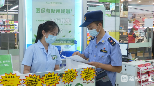 在检查中,执法人员还督促零售药店要严格落实疫情防控要求,一定要查看防疫“三件套”,测量顾客体温、查验苏康码(绿码)、佩戴好口罩,保持“一米线”距离。
