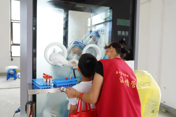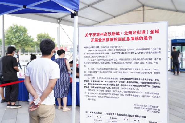 吾悦广场采样点是苏州高铁新城(北河泾街道)规模最大的核酸检测应急演练采样点,共配备医护人员和工作人员18名,另有志愿者20名。