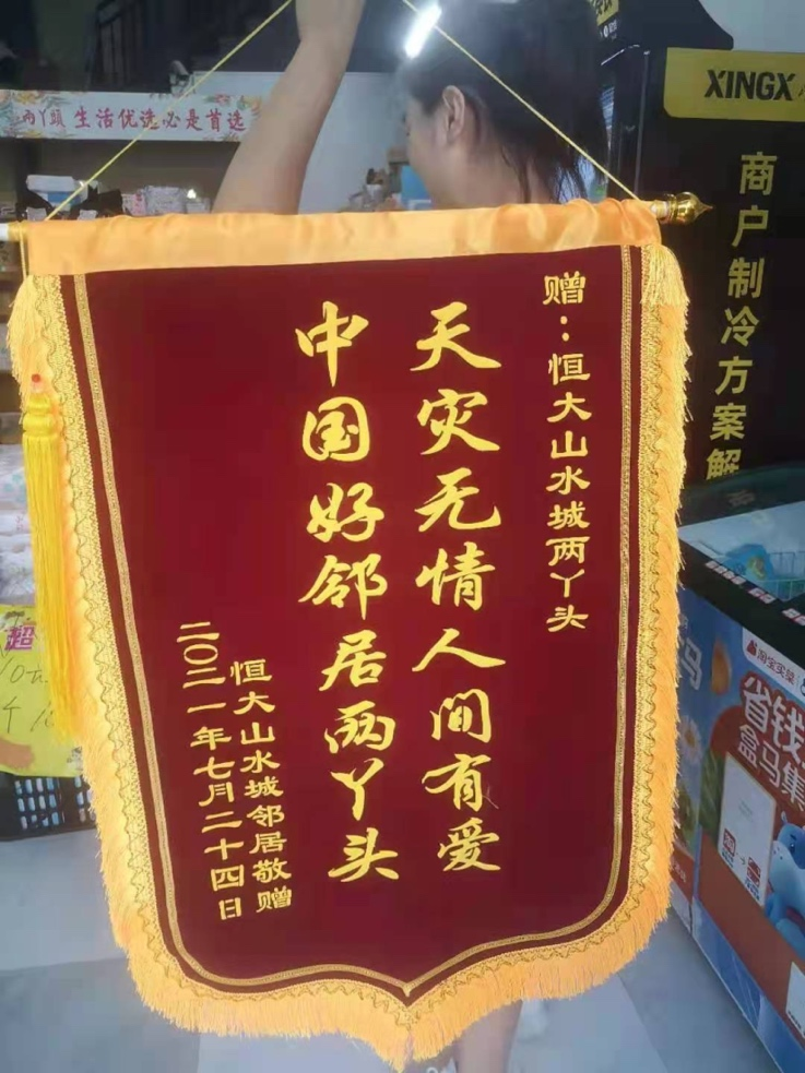 “多亏了他们帮忙,这绝对是良心店铺,良心老板,必须‘曝光’。”家住该小区的李先生事后感慨万千,彼时人在郑州出差的他一筹莫展,老婆被困不能回家,家里只有68岁的母亲和两岁半的孩,小区停水停电停气,连给孩子冲奶粉的热水都没有。“多亏了他们,孩子才有吃的。”李先生口中的良心店铺,就是所在小区的的菜鸟驿站,经营菜鸟驿站的是对夫妻,崔轲轲及其老公李东岭,除了驿站他们还兼营一家名叫“两丫头”的超市。从7月21日开始,连续6天,夫妻俩以及两个孩子齐上阵,免费为所有居民提供吃喝,送热水送物资,直到小区通电、通气。