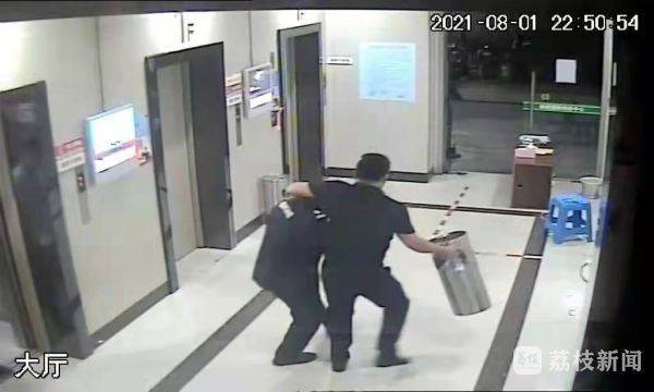 这时另一位业主登记结束要进小区,孔先生进入大厅为业主刷卡,郭某跟随进入,并对孔先生进行追打,孔先生避让后,郭某踩扁电梯口的垃圾桶,摔坏检测口的电扇,踢倒防疫宣传的展架,并将孔先生停放在小区门口的电动三轮车窗户砸破。