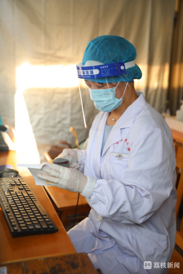 祁遇的母亲刘亚芹是六合区人民医院物资管理科的工作人员,物资管理科不仅负责本院的各类防疫物资供应保障,还要负责六合区多个社区检测点的物资保供,刘亚芹在做好自己本职工作的同时,也积极参与到患者信息录入和核酸检测采样登记工作。
