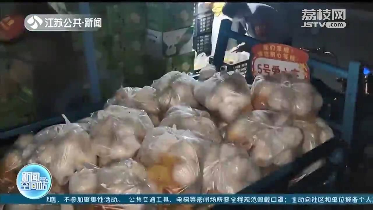 江苏台记者周会峰说:“现在是晚上将近10点了,现在有很多志愿者在这里分发水果。他们在今晚12点之前要把这些水果送到隔离小区的居民家里。”