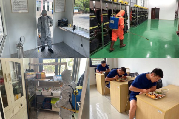 严格落实日常防疫措施。每日组织指战员测量体温,对营区车库、宿舍、楼梯、食堂、库房等进行无死角消毒,降低感染疫情的可能。