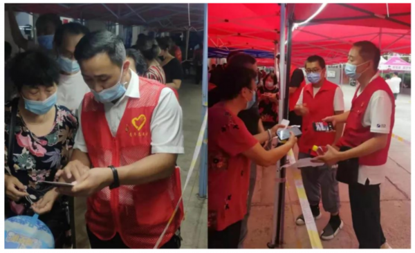 无锡分公司第一时间组建“党员突击队”、设立“党员先锋岗”,号召党员、团员加入分公司红心志愿服务队,利用节假日深入社区,带头做好基层志愿服务工作。在基层一线,志愿者们向居民说明核酸预约机制,细心讲解最新防疫政策,帮助老年居民申领预约检测二维码。积极配合社区做好电话联络、预约上门、数据录入等工作,为社区疫情防控工作贡献力量,架起服务群众的“连心桥”。
