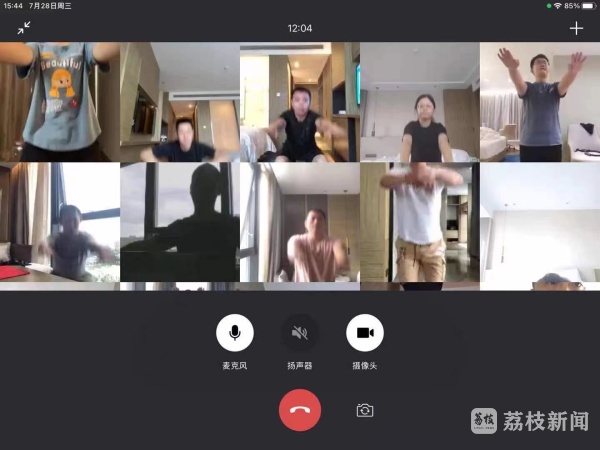物资供给有限、消杀任务繁重、日常运转保障……值守人员肩负着更多的使命与责任。“我们仍在高风险地区,切不可放松警惕。”机关值守临时党支部书记郭逍遥第一时间召集全体党员,拉出了职责清单。而此时,已是他连续奋战的第14天。协调对接多、临时任务多、保障需求多,他的手机很少“安静”,即便是偶尔和3岁的女儿视频通话,也多次被打断。在岗一天就要干好一天的工作,在他的带领下,值守人员先后完成营区消杀、隐患排查12次,清理转运各类物资2.3万件,各项工作仍然有序开展。8月1日在集中隔离点,正在举办线上八一朗诵会,民警唐晓羽正通过视频连线,朗诵自己创作的诗歌,进一步激发大家的战疫热情。这几天隔离点的民警职工们也没闲着,他们把隔离点当作“新”的出发点,通过手机视频开设“英语讲堂”“体能比武堂”等线上课堂。“你这个发音不标准呀!”“咱俩比比,看谁体能得好。”视频里民警职工们讨论地热火朝天。
