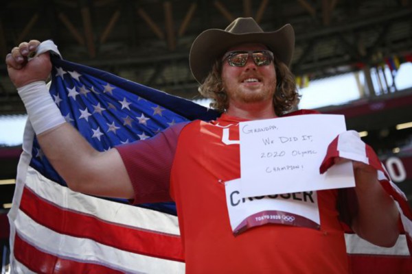 夺冠后,克鲁瑟泪流满面,拿出写给天堂的一封信:“爷爷,我做到了,东京奥运会冠军!”