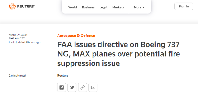 据路透社、美国消费者新闻与商业频道报道,当地时间8月5日,美国联邦航空局就波音737Max及部分737系列飞机发布新的安全指令,以避免空调系统增大火灾隐患的问题。