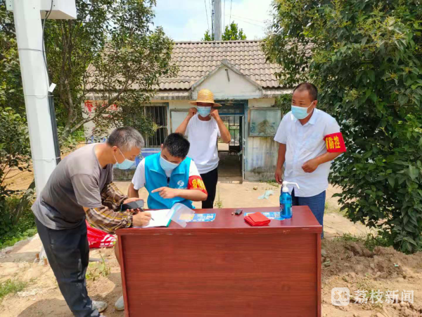 芦湖村老党员吴绍奎、鸣九村大学生预备党员王润扬参加疫情防控宣传点值班,他们冒着酷暑值守在卡点上,对过往群众进行信息登记、疫情防控宣传、政策措施解读等工作。“预备党员要向老党员学习,严格以党员标准要求自己,在疫情防控紧要关头共产党员必须站在疫情防控一线,为群众守好生命健康安全线。”王润扬说。