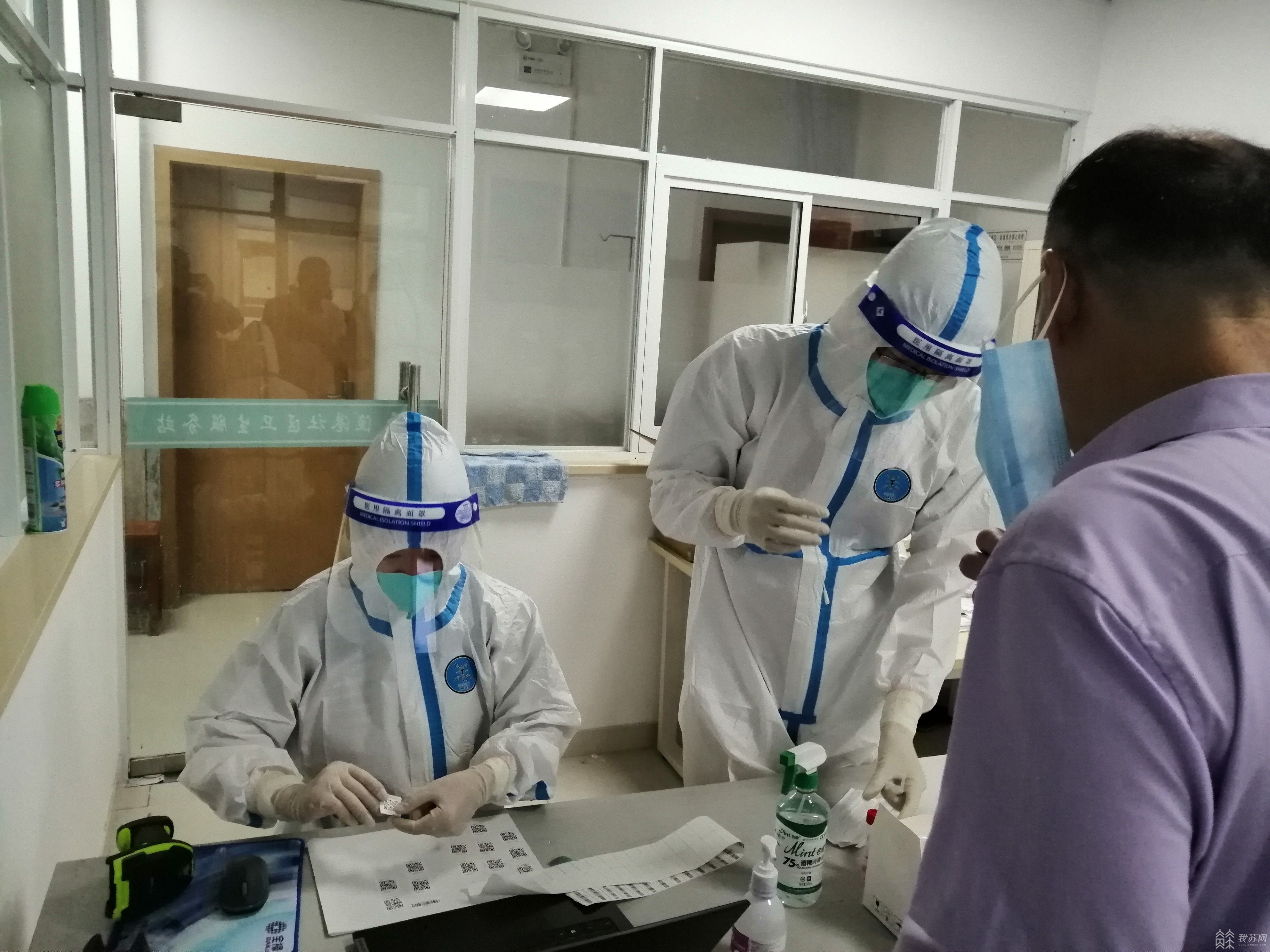 核酸检测点一般只配备三个医生,他们还需要负责上门核检的工作。因此,在专业医护人员不足的情况下,陈春花作为医辅人员参与了南京回锡人员的核酸检测工作。