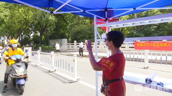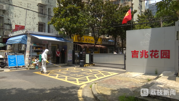 江苏台记者沈灿说:这里是南京市玄武区的吉兆花园小区,大家可以看到,虽然它是一个老小区,但是在街道、社区和物业公司的共同配合下,一直积极落实防疫的标准。在昨天,8月5日,它已经作为样本申报南京市首批"无疫小区"。