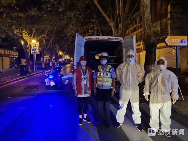 当她们步行至文昌楼时,遇到了正在返回岗点的交警一大队二中队指导员刘洪武和辅警高淼,他们刚刚完成当天所有核酸采集转运保障任务,驾驶警摩正好经过文昌阁,遇到四名医护人员,她们看样子十分疲惫和焦急,步履蹒跚,四处张望,想寻求帮助。民警立即停车询问情况,四名外地护士告诉民警她们返回宾馆时迷路了,并且告诉民警宾馆的名称。刘洪武听后发现,这里离她们住的宾馆还有很长的一段距离,况且这些支援扬州抗疫的医护人员工作了一天,身体十分疲惫。于是刘洪武立即放下警用摩托车,用岗点的私家车,将这四位无锡支援的医护人员安全送到荷花池南街的一个宾馆。