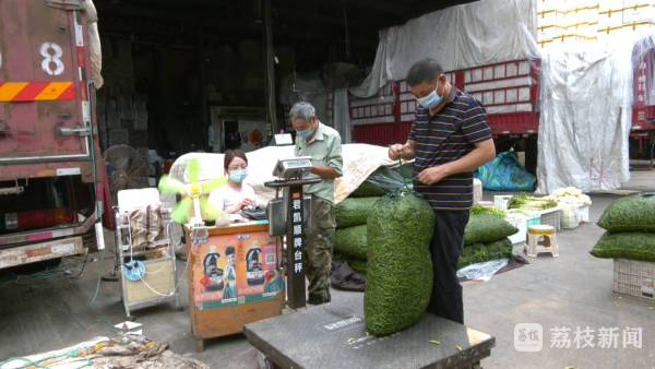 7号上午,记者来到扬州联谊农贸市场看到,一辆辆运送鲜菜的大卡车已经入场,工人师傅们顶着烈日,正在卸货。供应商王师傅介绍:“车上有25吨50多个品种的蔬菜,上午刚从常州运来,下高速时走了绿色通道,现在进城主要查,行程码,核酸,还有我们市政府发的通行证。”