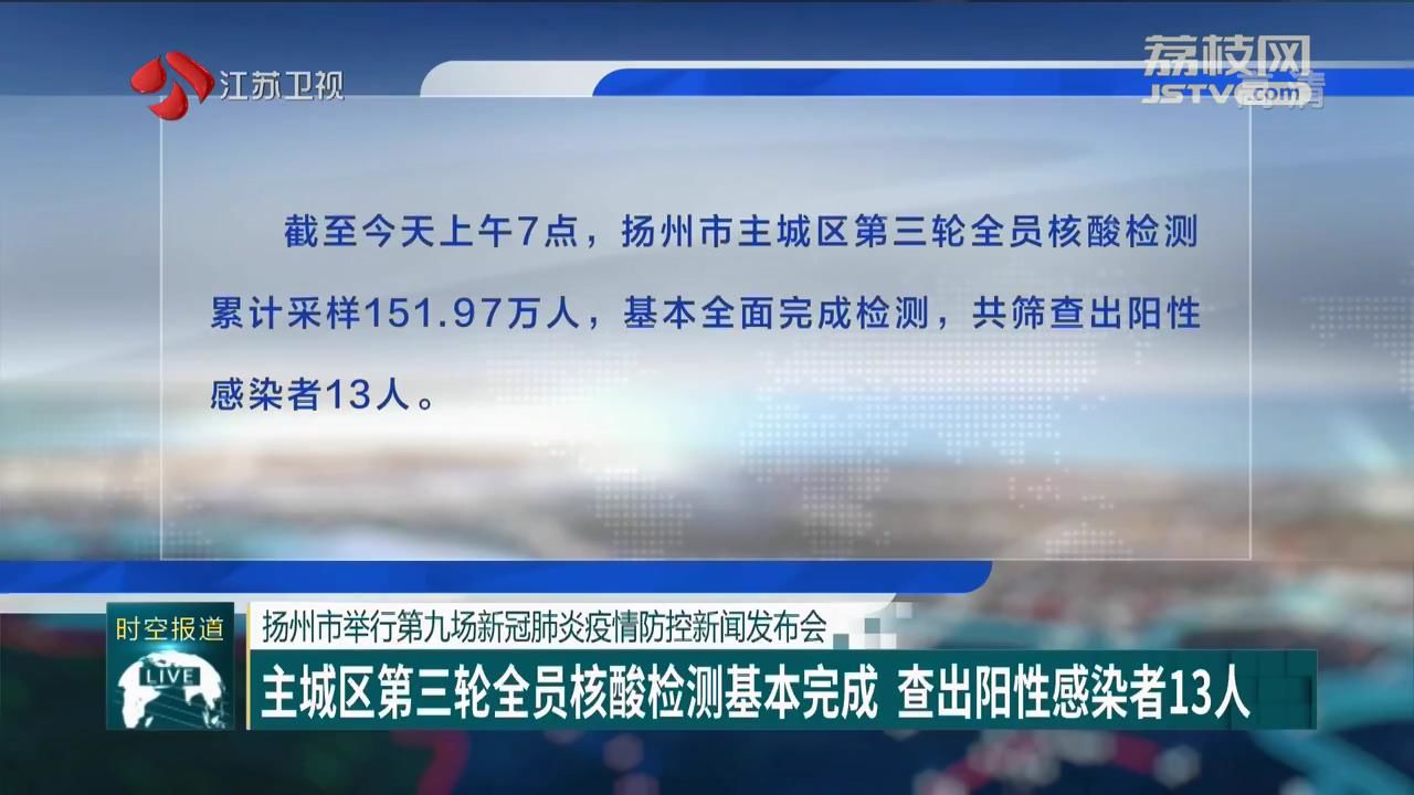 截至7日上午7点,扬州市主城区第三轮全员核酸检测累计采样151.97万人,基本全面完成检测,共筛查出阳性感染者13人。