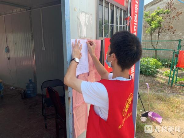 清晨5点,简单的洗漱后,扬州职大艺术学院视传2001班魏昭骑着车迎着晨光就出门了。参加完泰州市姜堰区梁徐街道志愿者动员会后,上午9点,一个戴着红袖章的挺拔身影出现在泰州市姜堰区梁徐街道张埭社区出入口,开始一天的疫情防控志愿服务。
