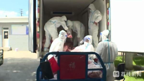 昨天下午,在禄口保供物资储备冷库里记者看到,一大批鲜猪肉正忙着装车,准备送往茅亭社区,分发给那里的居民。禄口街道茅亭社区戴求恩告诉记者:“今天到货量是6567户,6567户人家要拿到我们分发的物资猪肉,把猪肉分发到各个指定的小区,小区里有专门的志愿者小分队及时分发到每一户人家去,现在天气比较热,时间长了猪肉就会变质发臭,所以我们就要第一时间把最新鲜的肉,发到每一户老百姓手上。”