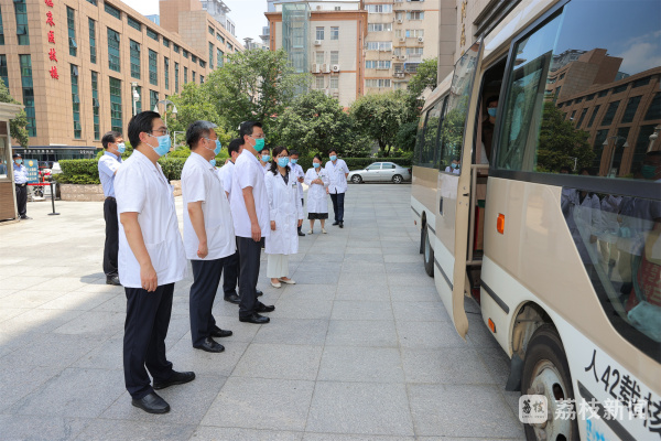 为贯彻落实国务院联防联控机制综合组江苏工作组要求,进一步做好新冠肺炎患者救治工作,根据江苏省卫健委、省中医药管理局要求,江苏省中医院(南京中医药大学附属医院)派出5名专家,其中4名专家支援扬州开展新冠肺炎患者救治,他们分别是江苏省中医院呼吸与危重症科朱际平主任医师、徐静主任医师、李磊副主任医师、吴刚副主任医师;支援溧水中医院(南京市新冠肺炎康复定点医院)的是周锦勇副研究员。8月7日中午12:00 ,4名专家带着全院4000多名职工的嘱托奔赴扬州,开展新冠肺炎救治工作。江苏省中医院党委书记方祝元教授,党委副书记、院长翟玉祥教授和相关院领导、呼吸与危重症科主任以及部分职能部门负责人为勇士壮行。
