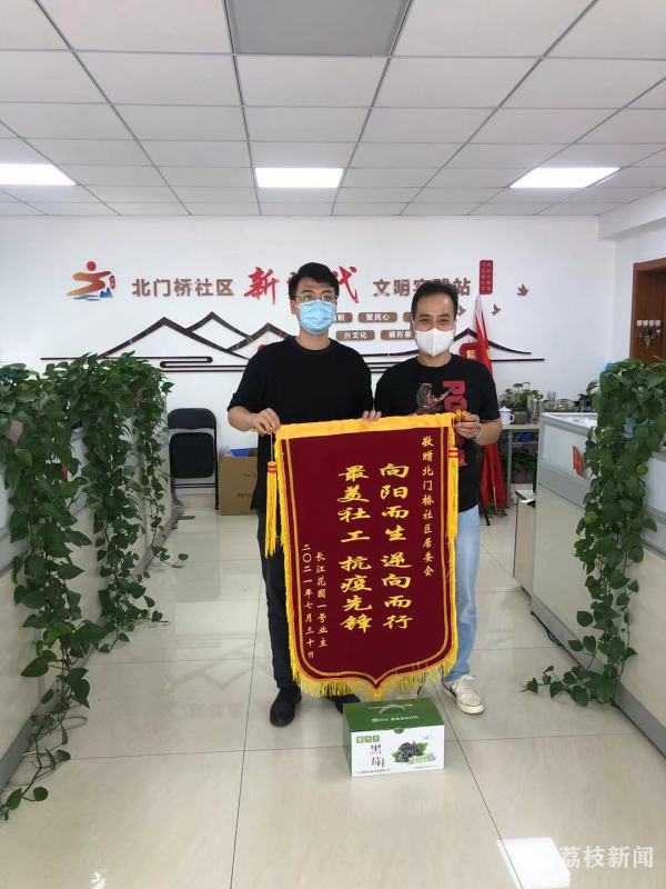 “向阳而生,逆向而行。最美社工,抗疫先锋。”这句话来自一面锦旗,同时这也是南京北门桥社区居民李先生对社区以及网格员抗疫工作的肯定。8月7日,记者在社区见到了这位收到锦旗的网格员。