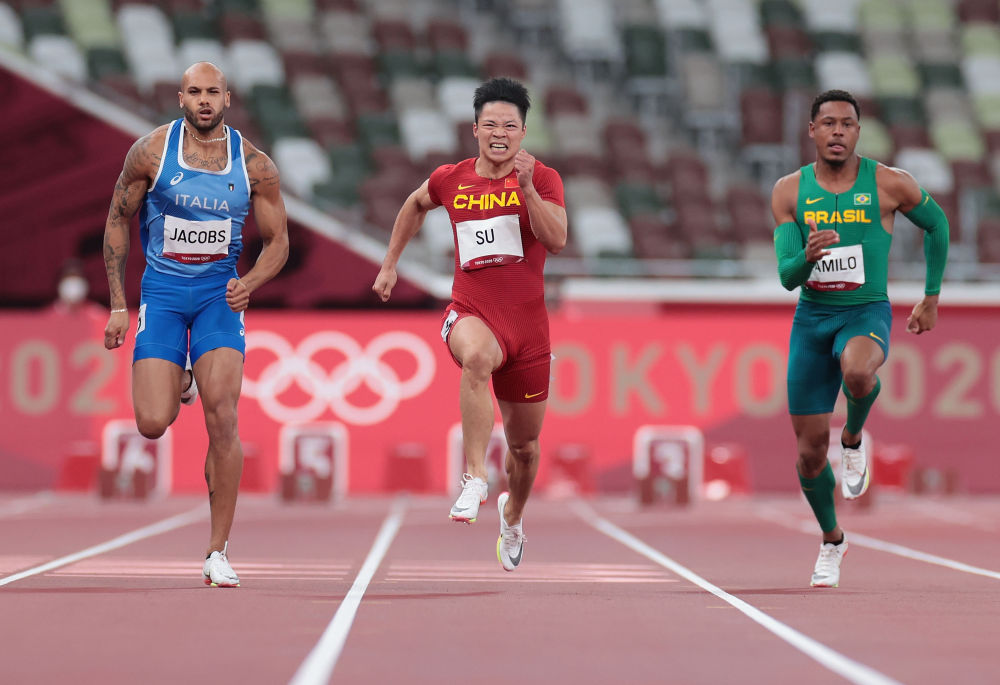 8月1日,苏炳添在男子100米半决赛中。新华社记者李钢摄
