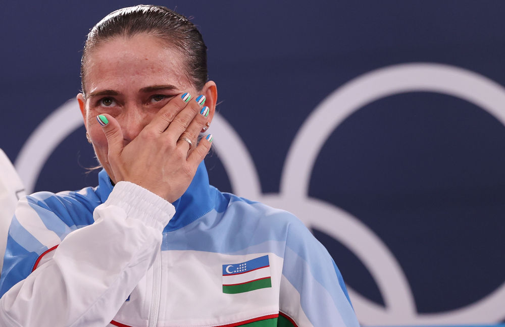 7月25日,丘索维金娜在比赛后流泪。新华社记者曹灿摄