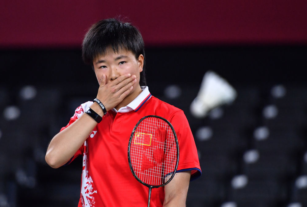 7月29日,何冰娇在羽毛球女单八分之一决赛中。新华社记者朱峥摄