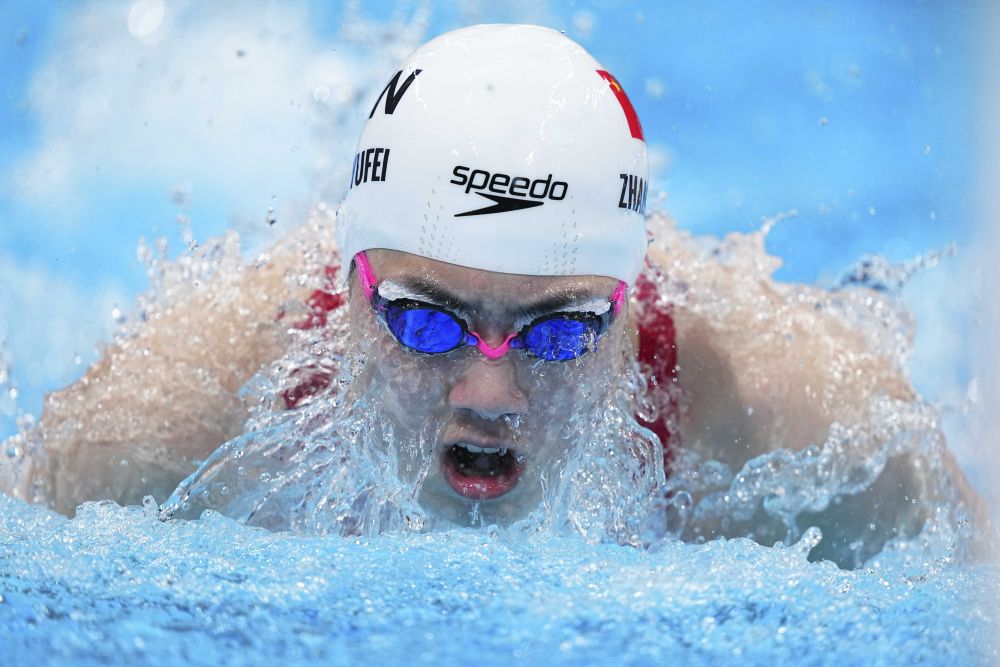 7月31日,中国队选手张雨霏在4X100米混合泳接力比赛中。新华社记者许畅摄