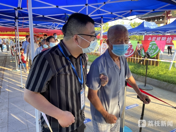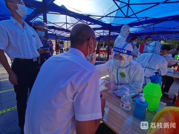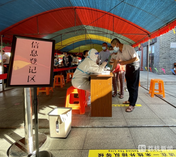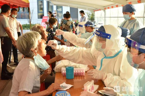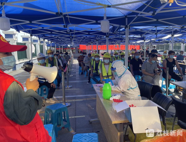 8月5日上午,盐都区盐渎街道开展全员核酸检测演练。