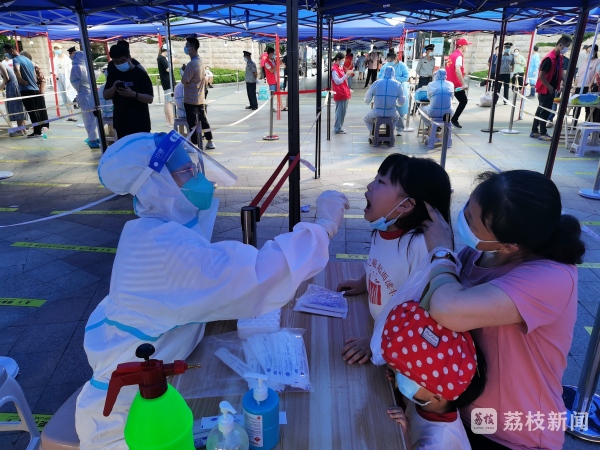 在恒大名都集中采样点,测温查码区、临时隔离区、采样区等多个功能区域科学划分,居民们带着口罩在工作人员和志愿者的引导下有序排队,医护人员按“一人一采一消毒”要求为居民开展核酸检测采样。
