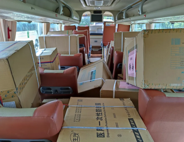 看!他们“全副武装”,携带了防护服、 核酸检测工具等众多防疫物资。