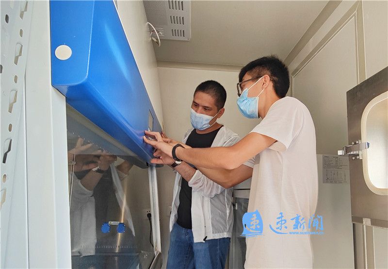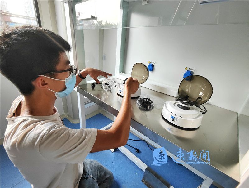 8月8日,沭阳县核酸检测基地、铭和医院等4家医院新建的5个移动PCR方舱实验室完成设备安装调试,陆续投入使用。