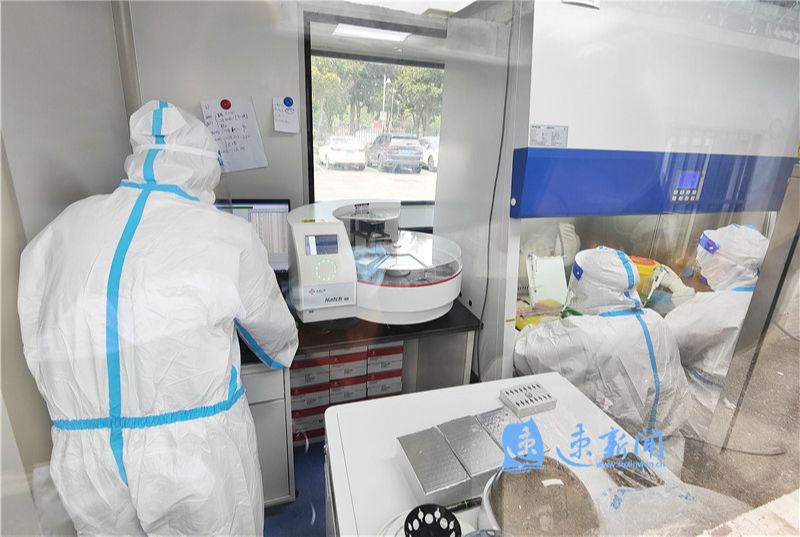 为快速进行核酸检测,沭阳县核酸检测基地、铭和医院、南关医院、仁慈医院等多家医院新建移动PCR方舱实验室,这些方舱实验室内分别设试剂准备、标本制备、扩增分析、高压消毒四个区,可以一站式快速进行核酸检测,做到24小时不间断,每日新增检测量可达1.76万管计17.6万人。