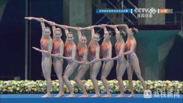 晚上6点半,花样游泳团体自由自选比赛正式开始,中国队的“8朵金花”在第10位出场,以《巾帼英雄》为表演主题进行比赛,该主题选自《穆桂英挂帅》,展示坚韧不拔的女性形象。