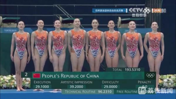 比赛过程中,姑娘们整齐划一的动作、优美优雅的身姿,赢得了评委和观众们的一致好评,获得了97.3000分的高分。加上在8月6日的团体技术自选比赛中的得分96.2310分,最终中国队以总分193.5310的高分,获得了本届东京奥运会花样游泳团体项目的银牌。