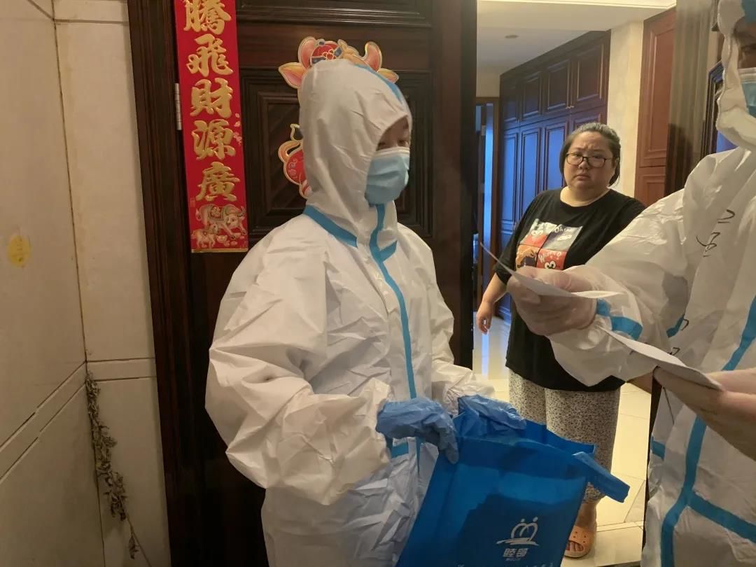 金基集团副总裁吴啟月带队组建50名志愿者,重点进驻秦淮区双塘街道与建邺区南苑街道,志愿者们与社区一线工作者实施换班制度,保证了街道所在的部分社区隔离居民的生活所需。
