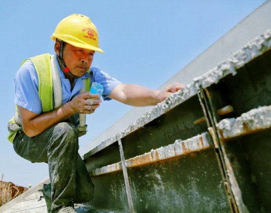 为确保箱梁架设过程安全,在架桥机过孔、前支腿就位、纵移驱动支柱、喂梁、驼梁、落梁、锚栓孔灌浆等工序环节,箱梁运架队做到分工明确,责任到人,全程卡控,精准到位。