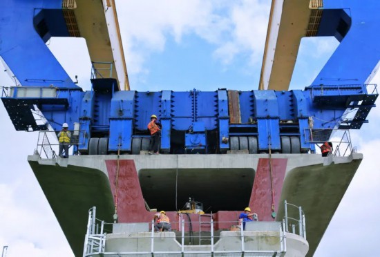 据了解,该箱梁运架队为中铁上海工程局一公司“战略支援部队”,在南沿江高铁箱梁架设总任务为568孔,目前已架设完成402孔,剩余166孔,计划于9月30日全部架设完成。