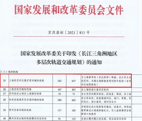 此前国家发改委印发了《长江三角洲地区多层次轨道交通规划》,规划中的“上海经苏州无锡至常州城际铁路”,即苏锡常城际铁路被列在了“十四五”长三角城际铁路项目中的首位。作为长三角地区的一条重要城际铁路,苏锡常城际铁路设站密度高,在服务上将更加“细化”,以承担沿江城市群城际客流为主,同时将兼顾沿线城市内部市域(郊)客流,将直接服务于苏锡常都市圈通勤。