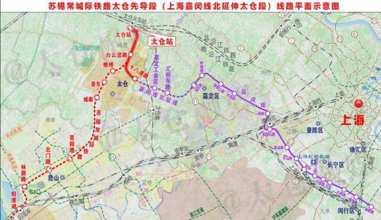 招标公告显示,太仓先导段工程范围包括太仓站(含)至白云渡路站至十八港路站至省界,线路全长约10.3公里,设站3座,另设太仓车辆段一处,接轨于苏锡常城际铁路太仓站北端。