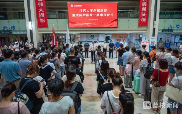 8月6日晚,受江苏省卫健委统一调度,江苏大学附属医院驰援扬州医疗一队迅速集结,奔赴目的地医院支援新冠肺炎疫情医疗救治工作。