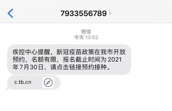 骗子通过非法途径获取公民个人信息,并向其发送疫苗接种预约诈骗短信。