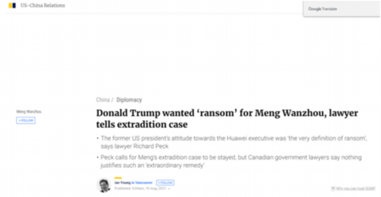 特朗普政府干涉孟晚舟案的真实意图暴露了?