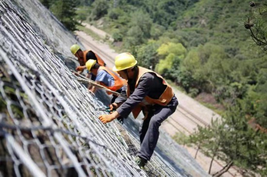 为保障平稳渡汛,铁路部门强化防洪应急值守,加强对防洪重点处所、薄弱地段的巡查。太原局太原工务段为铁路防洪点沿线山体,安装主动式、被动式拦网,避免发生危石塌落。