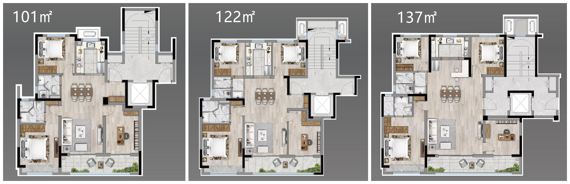 龙湖天曜共打造20栋8-11层洋房,约946套房源,户型建面约101-137㎡,项目现已开放两个样板间,分别为137㎡升级精装样板间和110㎡基础装修样板间。