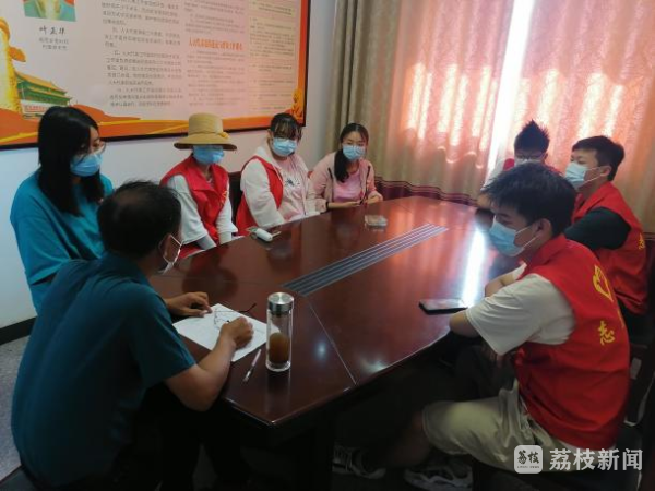 在疫情防控办公室,三名工作者及一名大学生志愿者在忙着对重点地区来泰人员进行信息排查、统计居家检测人员的信息报送等;还有些志愿者下沉到各个村组里面帮村民注册电子医保以及劝散打牌群众和进行疫情防控知识宣传。