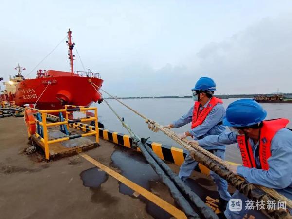 为严格落实疫情防控措施,防止疫情外溢,南京港股份公司自7月21日起实行“全封闭式”管理。217名员工主动“请战”组成“三防一保”专班驻守公司,克服人员减少、生产资源紧张、恶劣天气等困难,全力保障生产经营安全平稳有序。股份公司充分发挥“三防一保”专班统筹协调作用,在此基础上随即成立国际航行船舶专班,确保牢牢守住疫情防控各条防线。首批专班人员从接种过两剂疫苗、持有登轮证、核酸检测阴性的一线党员、班组长骨干中严格选拔。7月31日17时,来自韩国的“大林莲花”号外轮载着3300吨低温乙烯靠泊608、609码头,这是股份公司国际航行船舶专班成立后的第一次作业。“大林莲花”号靠妥后,专班人员随即对岸缆及缆桩等进行消毒,靠泊作业结束后,专班人员“两点一线”回到隔离休息点,整个过程做到沿途不停留、不下车、不超出规定路线。在取得规定手续文件后,经过近13小时的紧张奋战,外轮“大林莲花”顺利完成卸货作业。