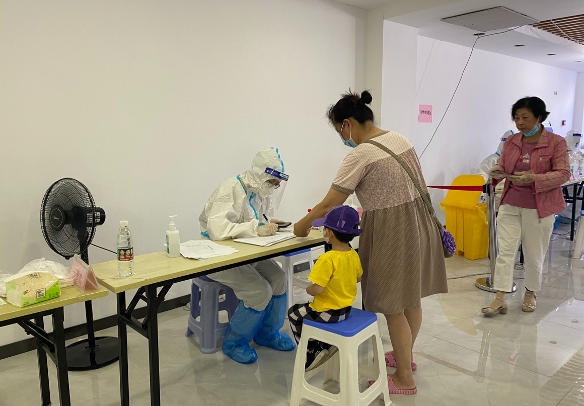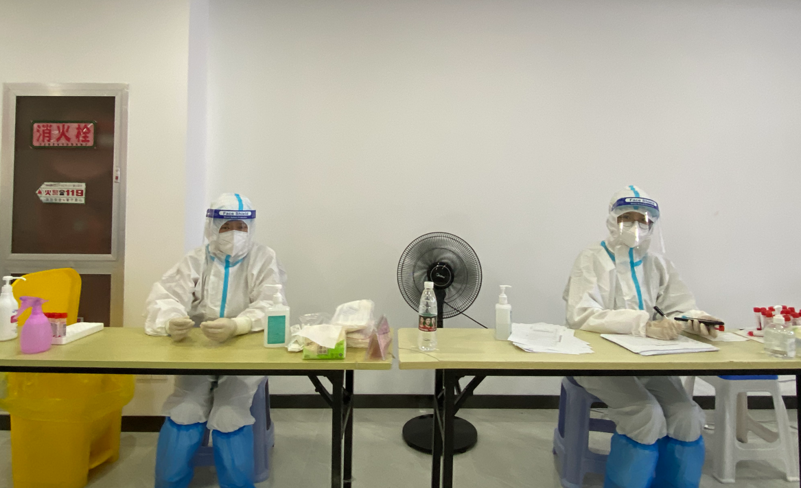 女儿方子琪是一名“00后”,广西师范大学的一名准大三学生,在妈妈的耳濡目染下,她毫不犹豫地加入到顾庄社区的志愿者队伍中。在乾和华府核酸检测点,方子琪在社区工作者的指导下,迅速掌握使用核酸采集手机APP的使用方法,耐心地接待每位来检测的居民,贴条码、扫证件、登记信息……一套流程下来仅30秒。她说,“穿上防护服,我就不是孩子了,尽管工作存在风险,但我无悔!”