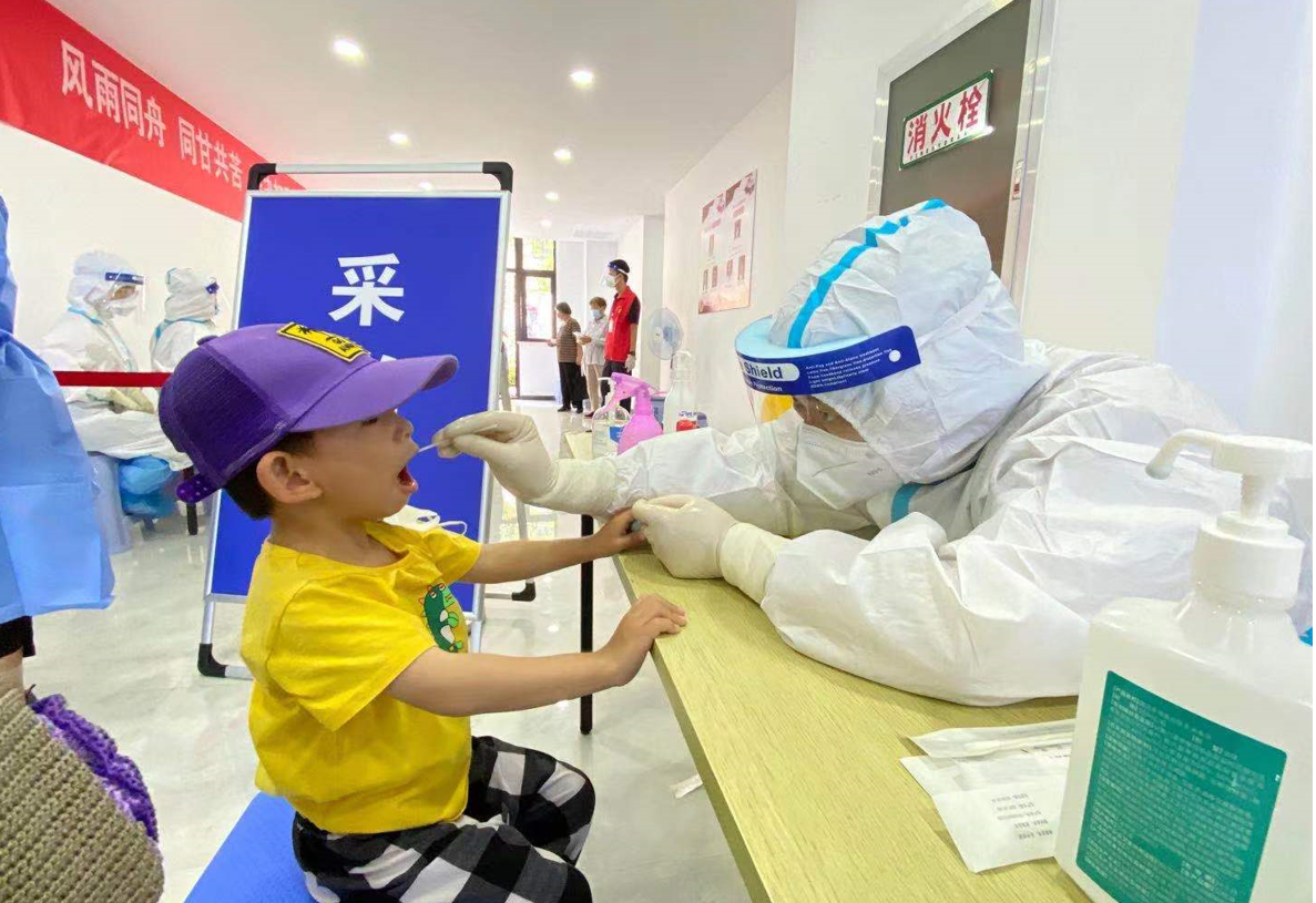 母亲孙海鸥是曲江街道社区卫生服务中心的一名护士,自核酸检测启动以来,连续10天驻守在顾庄社区乾和华府检测点,负责核酸采样及医务人员调配工作。“抬头、张嘴、大声说‘啊’……”面对每位被采集者,孙海鸥都会重复这句话,话音还没落,拭子已放入被采集者咽部,反复擦拭咽部后迅速取出。每完成一例采集,她都会下意识用消毒液清洁双手,再开始下一例。“采集了这么多人,整个流程已经形成条件反射。”她说。