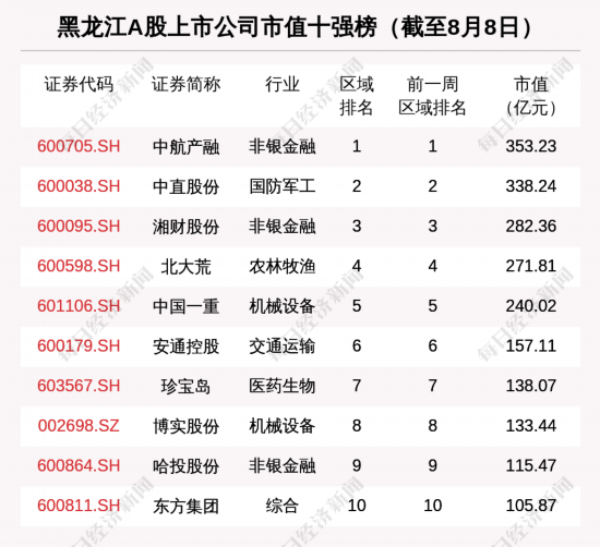 中航产融市值353.23亿元 稳居黑龙江股市值榜首