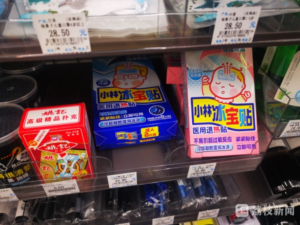 市场监管部门执法人员表示,南京《关于进一步严格疫情防控工作的通告》发布之后,他们第一时间传达落实通告要求,各零售药店立刻停止销售(含网络销售)退热、止咳、抗病毒和抗生素等四类药品。不过在日常的巡查中,执法人员发现一些超市中,还有退热、止咳等功效的非药品如退热贴、止咳贴等在销售。在一家超市,执法人员发现货架上还有退热贴在正常销售。